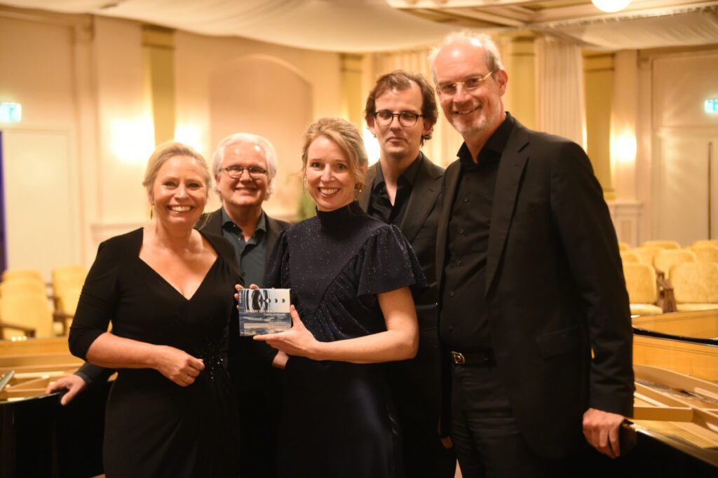 Met de leden van het Simeonkwartet na afloop van het presentatieconcert van hun opname van Ten Holts